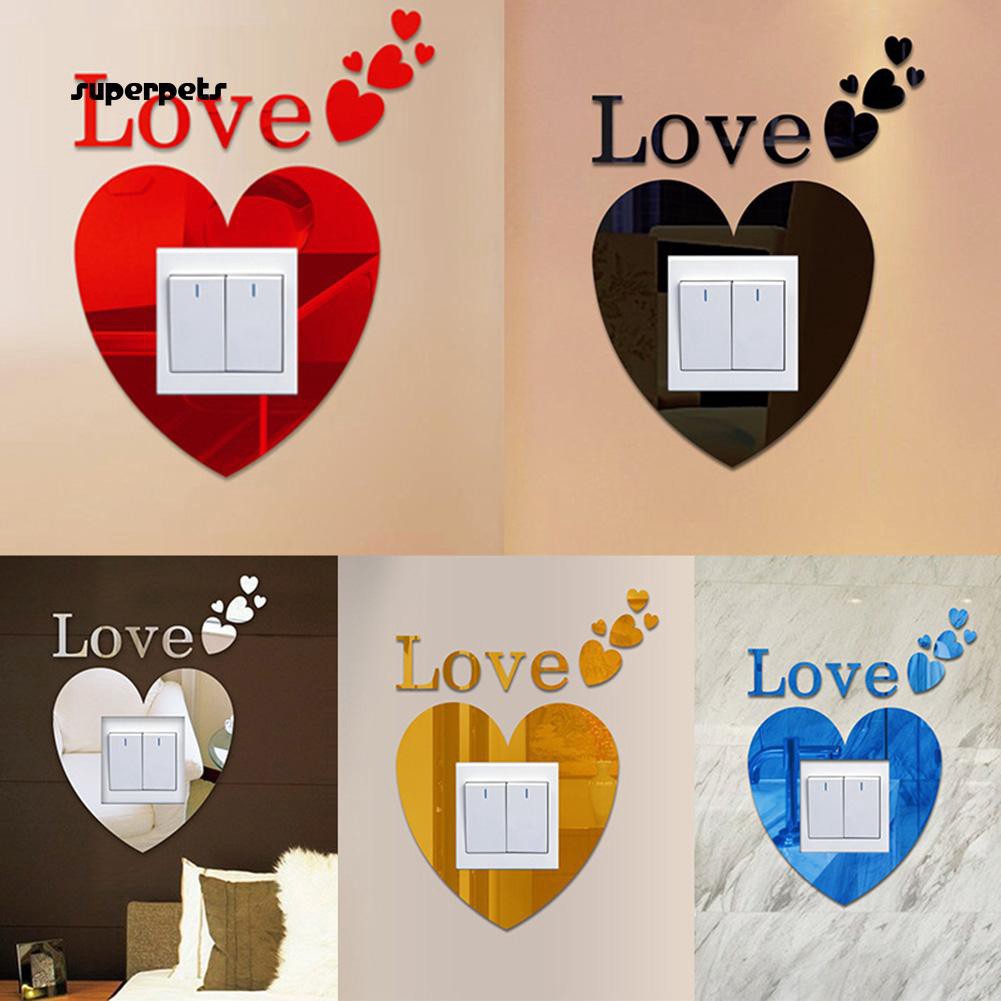 Super Fashion Home Room Art 3d Diy Hearts Shape Mirror Decoration Wall Switch Stickers
