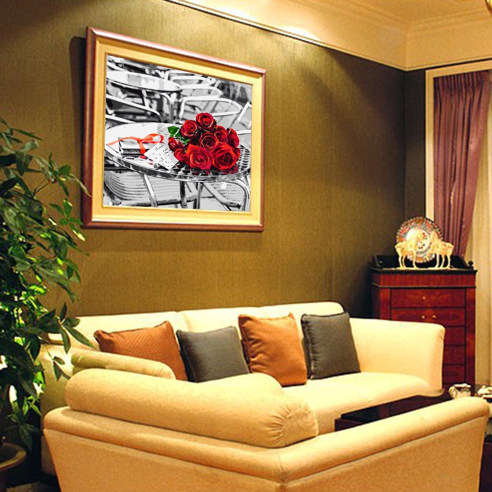 Diy Restaurant Decoration By Numbers Beautiful Frameless Home Kits Handpainted Oil Painting Wall Art Drawings Rose Pattern